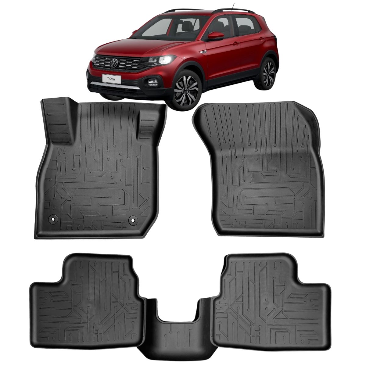 tapete VW T-Cross, tapete bandeja VW T-Cross, tapete borracha T-Cross, jogo tapetes Volkswagen T-Cross, tapete automotivo borda alta T-Cross, tapete abandejado