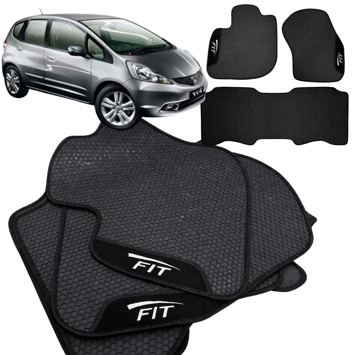 TAPETE BORRACHA COMPATIVEL COM New Fit 2009 2010 2011 2012 2013 2014 - JOGO COMPLETO COM TRASEIRO INTEIRIÇO SOB MEDIDA