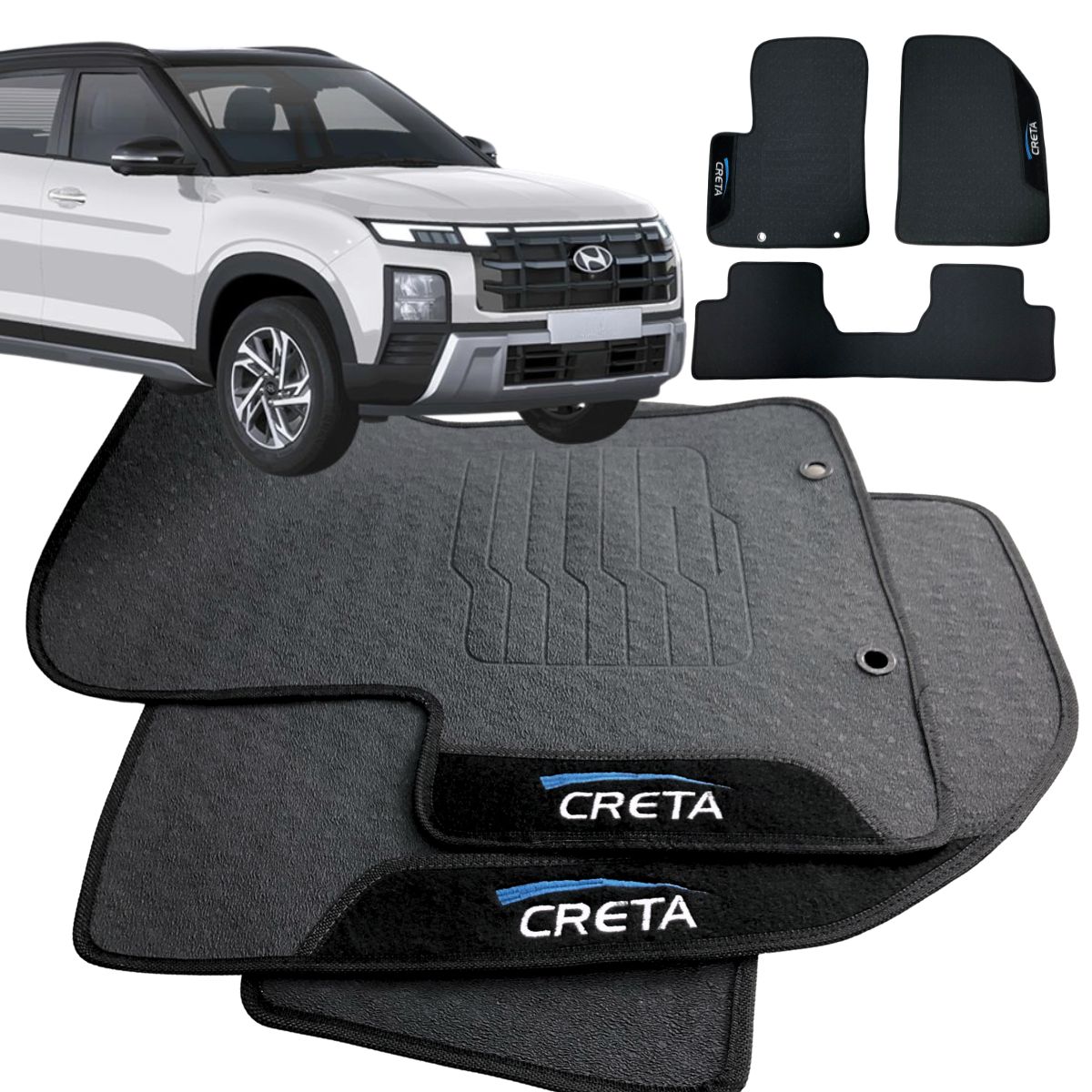 Tapete Creta, tapete borracha, tapete automotivo, tapete emborrachado, jogo de tapetes, acessórios para carro, tapete sob medida, tapete antideslizante, tapete premium, protetor interno Creta, tapete resistente, tapete com bordado, tapete para Creta.