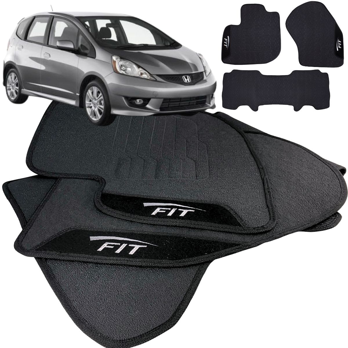 Tapete Honda Fit , tapete borracha, tapete automotivo, tapete emborrachado, jogo de tapetes, acessórios para carro, tapete sob medida, tapete antideslizante, tapete premium, protetor interno New Fit , tapete resistente, tapete com bordado, tapete para Hatch.